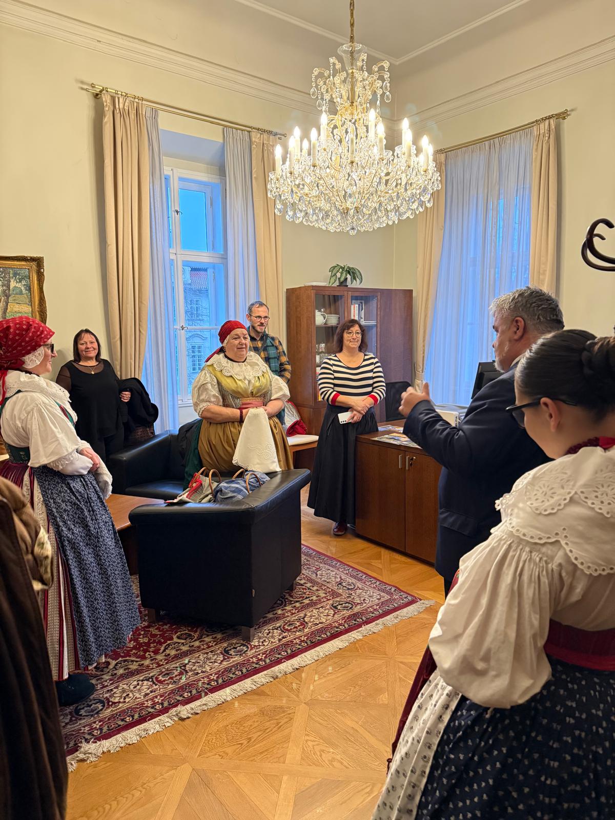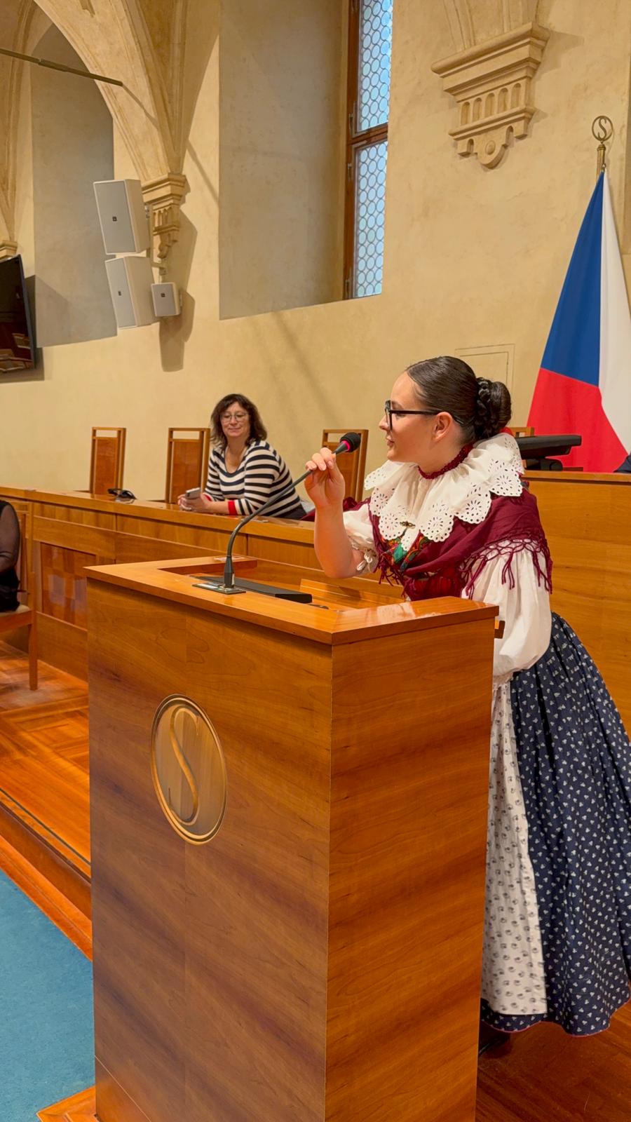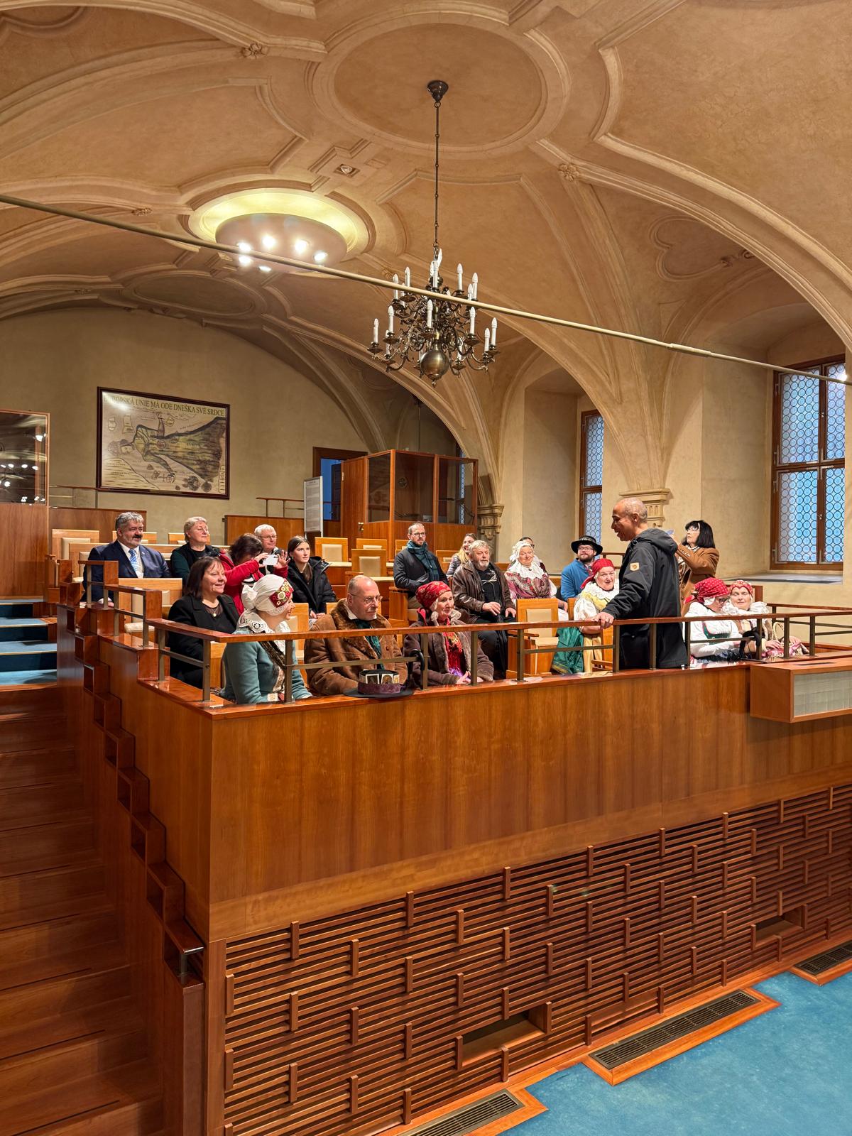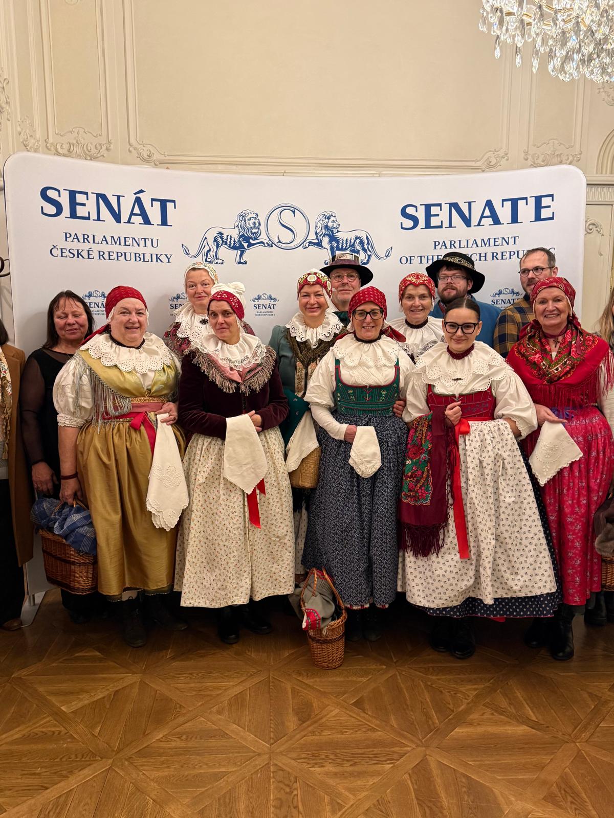Horačky nedávno ve čtvrtek 29. května 2025 vystupovaly jako mí hosté ve Valdštejnské zahradě (více zde). V pátek 5. prosince 2025 ale byly v Senátu na exkurzi. Přijely v krojích, zpívaly a měly spoustu dotazů. Nezapomenutelná a skvěla návštěva! ![]()